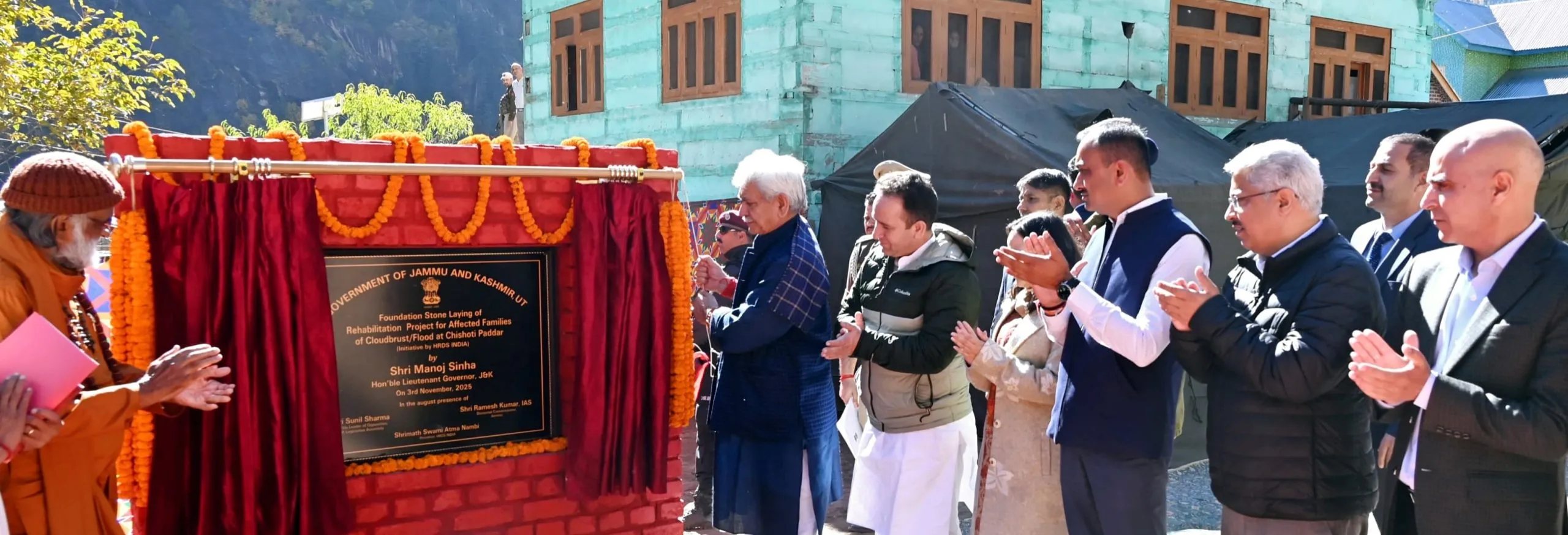 Jammu, Nov 21: Lieutenant Governor Manoj Sinha today laid the foundation stone for construction of new houses for families affected due to recent natural calamities