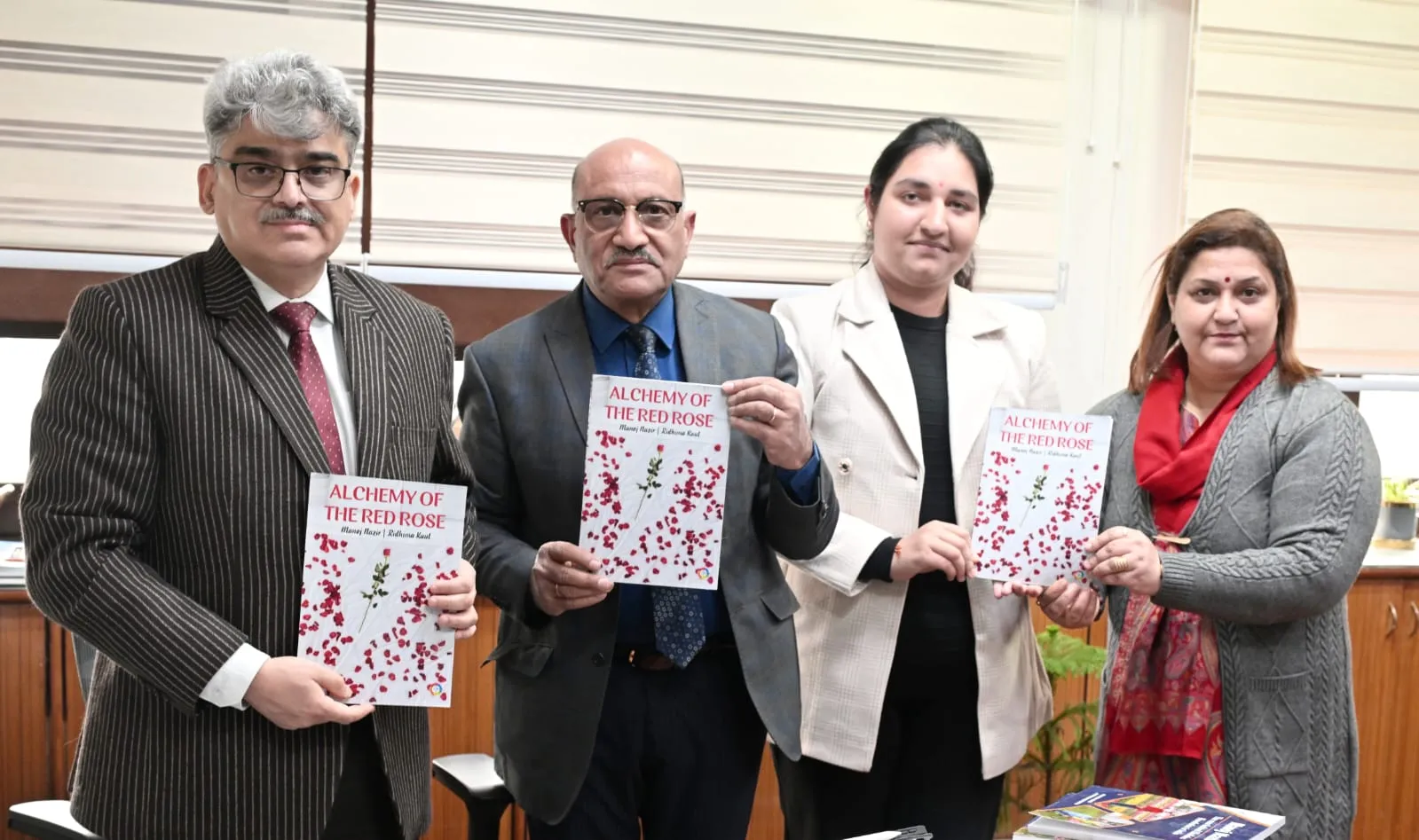 The books released include Alchemy of the Red Rose by Prof. Manoj Nazir and Ridhima Koul, The Impact of Climate Change on Flowering by Prof. Manoj Nazir and Ridhima Koul, and Manoj Nazir: The Man Behind the Gladiolus Revolution in India authored by Ridhima Koul and Dr.Jyotsana Maurya.